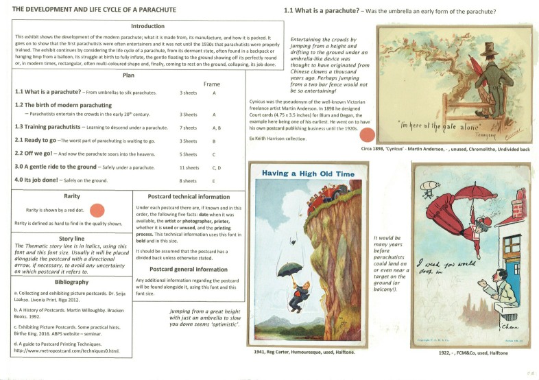 Barry Stagg. The Development and Life Cycle of a Parachute. Nordia 2018. Vermeil. Picture Postcard exhibit.