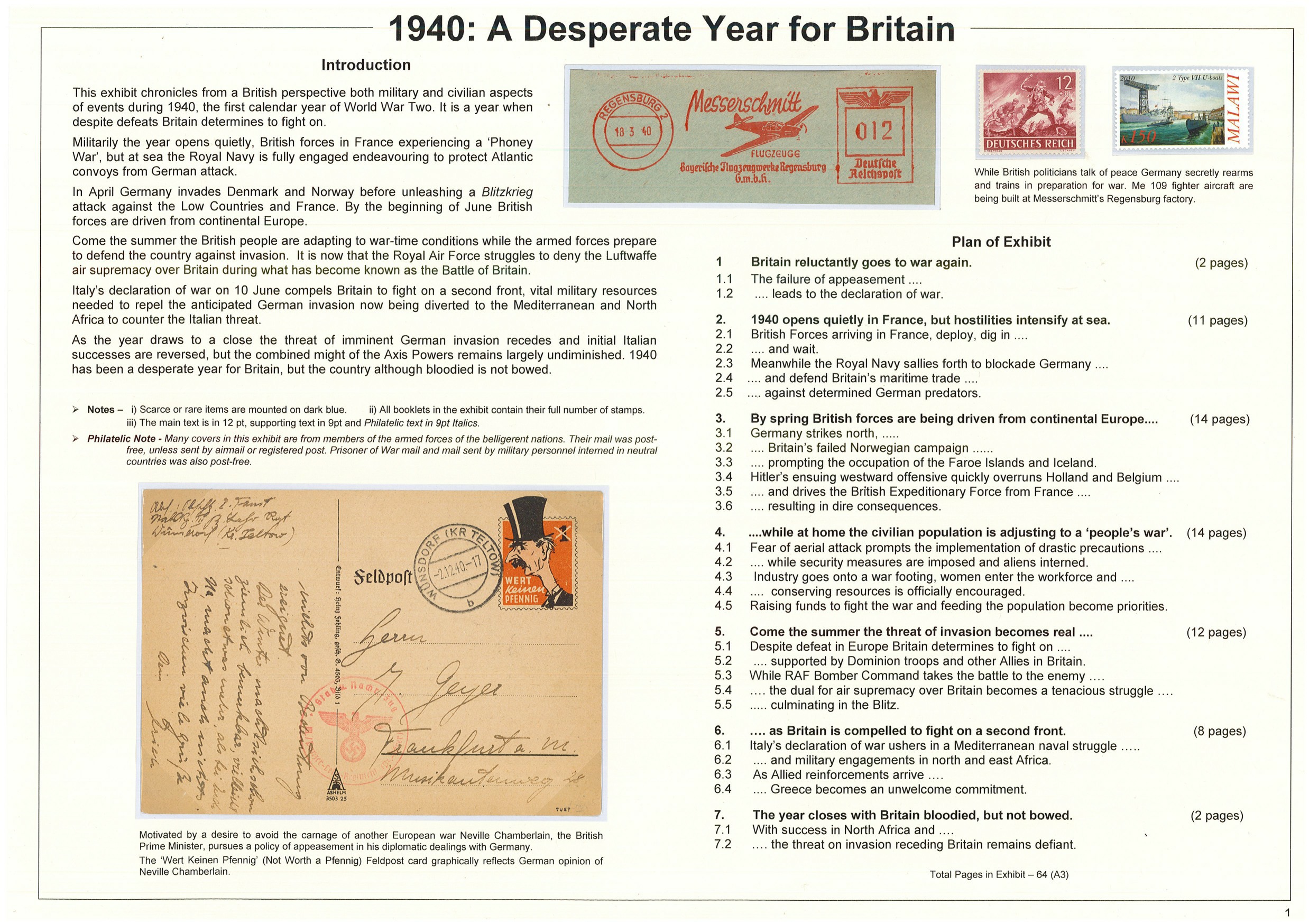 Jim Etherington. 1940: A Desperate Year for Britain. Finlandia 2017. Gold. Thematic Philately exhibit
